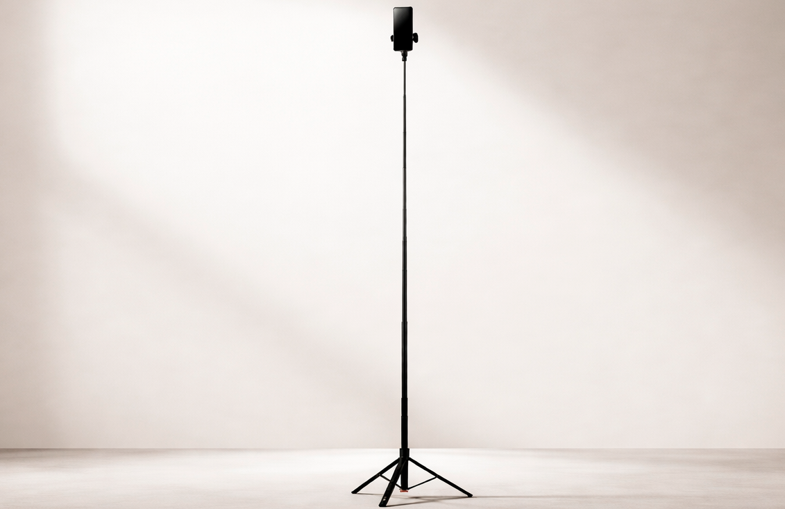 Модель оснащена выдвижной штангой длиной 62 дюйма, что дает больше свободы при выборе ракурса и помогает снимать не только селфи, но и общие планы, видео, прямые эфиры и групповые кадры. Держатель поворачивается на 90 градусов, поэтому можно быстро менять положение смартфона в зависимости от формата съемки.