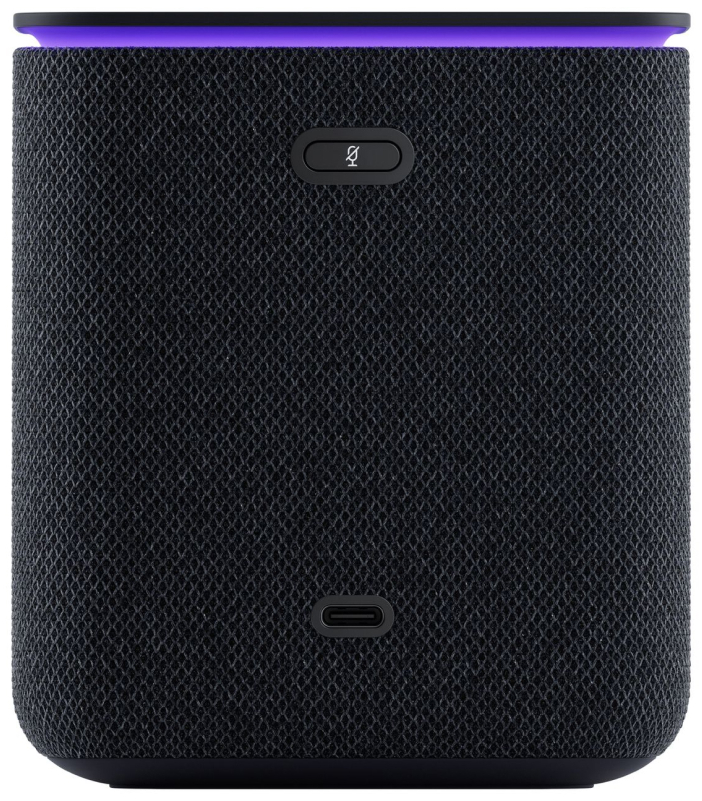 Приятный корпус с тканевой отделкой, доступный в разных расцветках текстильной части, не только придает колонке стильный внешний вид, но и создает приятные тактильные ощущения. Он также защищает динамики и слегка смягчает звук, а встроенный экран эффектно светится прямо на текстильной стороне.
