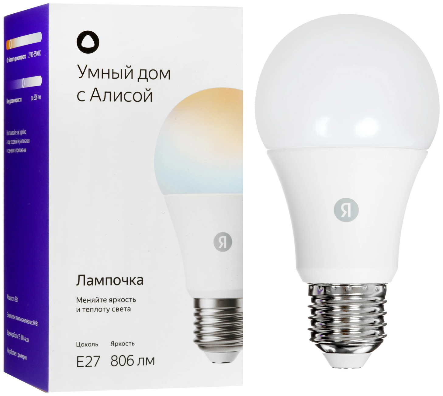 | Дополнительно | мощность 9 Вт, цветовая температура 2700-6500 К, световой поток до 806 лм, цоколь Е27 |