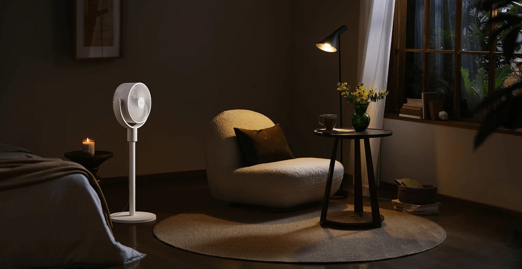 Xiaomi Smart Standing Air Circulation Fan можно использовать как напольный и настольный вентилятор. Благодаря продуманной конструкции он легко адаптируется под разные сценарии — от рабочего стола до полноценного охлаждения комнаты.